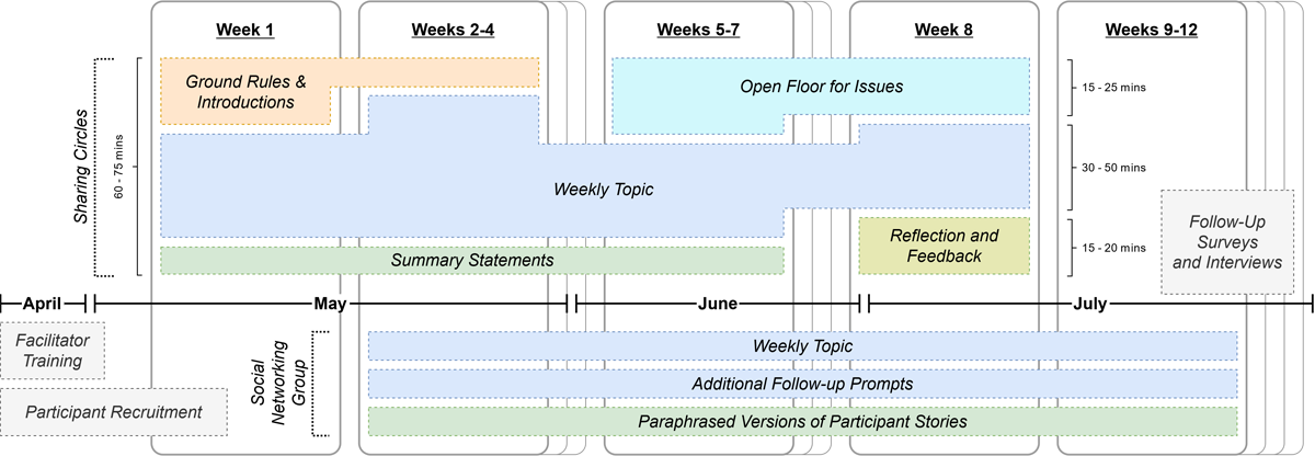 Home care workers (HCWs) provide essential care in patients’ homes but are often underappreciated and work in stressful and isolated environments with diverse and intersecting support needs. This paper describes a computer-mediated peer support program that centers around sharing circles: spaces for personal, narrative storytelling to encourage HCWs to collaboratively reflect on their home care experiences and build rapport and shared identity with their peers. We describe the design of this program and a 12-week deployment that we conducted to evaluate the program with 42 HCWs in New York City. Our findings show that participants engaged in multiple types of peer support including emotional validation, learning how to navigate the workplace and patient care, defining and enabling good home care praxis, and building understanding around purpose and identity as HCWs. We discuss how these findings inform the design of technology and use of holistic pedagogies, such as storytelling, to enable this support in computer-mediated peer support programs. Such programs can help researchers and practitioners interested in addressing diverse needs that occur in intersectional contexts, such as that of HCWs and other marginalized populations.